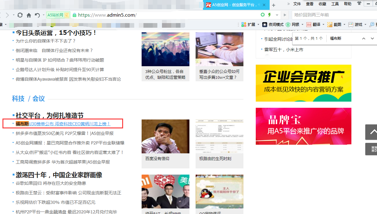 A5创业网(A5站长网)首页广告位推荐位置:科技/会议