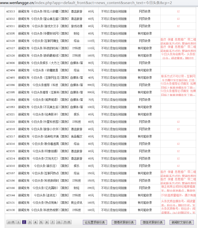 今日头条部分账号软文发稿价格