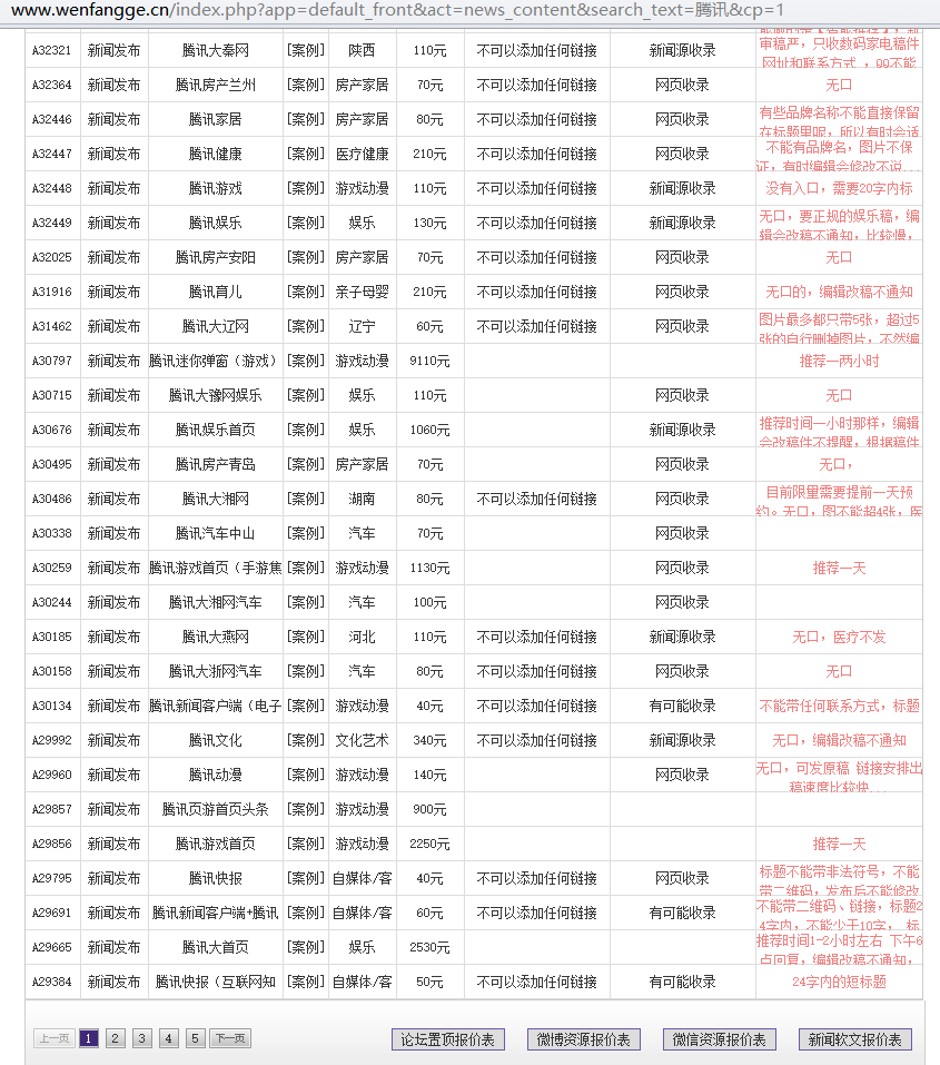 新闻源推广作为一种低成本、高收益的营销推广模式,已经被越来越多的中小企业接受,相对于其他的营销推广方法,新闻源推广既有权威性,又有口碑性,还有传播性,可以在短时间内快速提升企业、产品的知名度,塑造美誉度和公信力,几乎能达到以一抵十的效果。尤其今日头条这种拥有过亿网民的平台更是让无数中小企业眼红不已,那么你知道今日头条怎么发稿吗?今日头条怎么发布新闻吗?如果没有好的方法,不妨与文芳阁传媒m.ftslqw.cn类似的传媒公司合作吧,文芳阁在2015年集中技术收集了大量的今日头条发稿资源,如下: