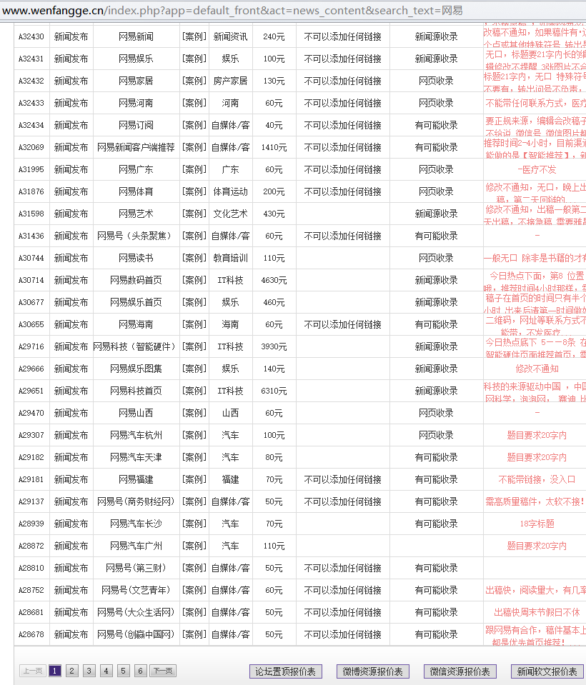 网易新闻部分频道发稿资源价格