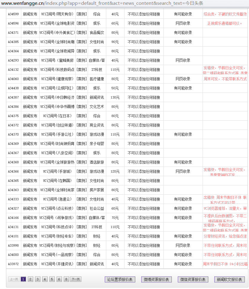 UC云观平台部分软文发稿资源价格