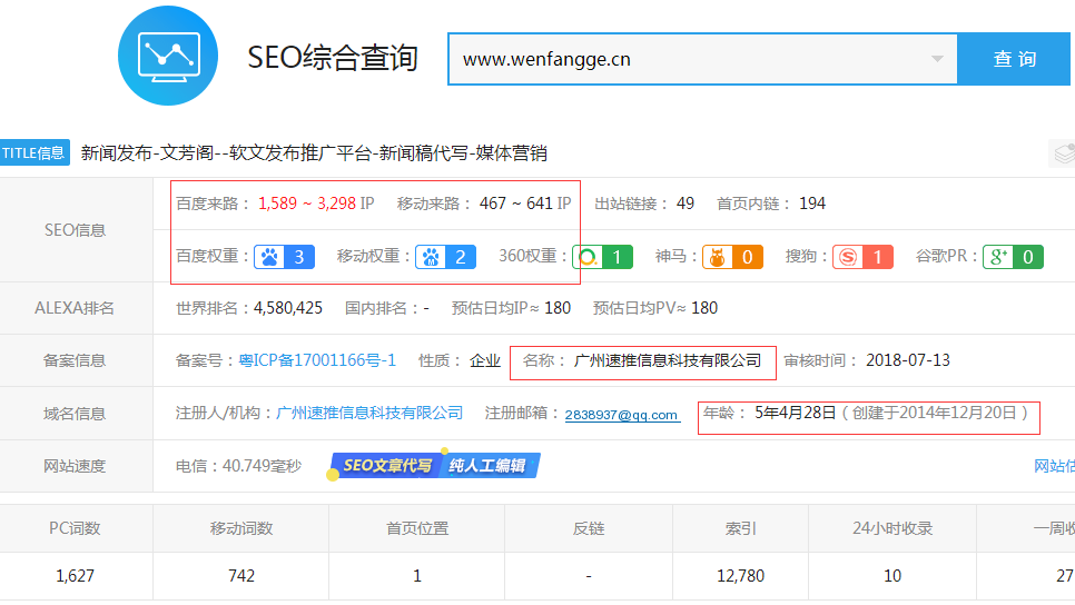 现在网络上主流的软文发布平台都是需要注册账户,充值以后才可以发布软文的,所以这里就涉及到平台规模和安全性的问题。其中有些软文发布平台资质差,经营时间短,不乏一些经营途中跑路的软文发布平台。所以大家在选择软文发布平台时,可以使用站长工具等工具查询网站的经营时间,公司资质和公司经营时间等。建议大家在选择软文发布平台时,选择经营时间最少在三年以上的软文发布平台,经营时间越久的软文发布平台,说明公司运营没有任何问题,大家可以相信。