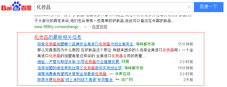 何为新闻源?新闻源是出现在百度资讯里收录的内容(见下面配图),指符合被百度作为种子的新闻站,站内信息第一时间被搜索引擎优先收录,且被网络媒体转载成为网络海量新闻的源头媒体。新闻源在网络领域内地位举足轻重,具有公信力与权威性,也是辐射传播至国内媒体网络的原点。新闻源是指根据《互联网新闻开放协议》,抓取某些网站新闻或资讯内容,从而将其作为内容来源的一种机制。
